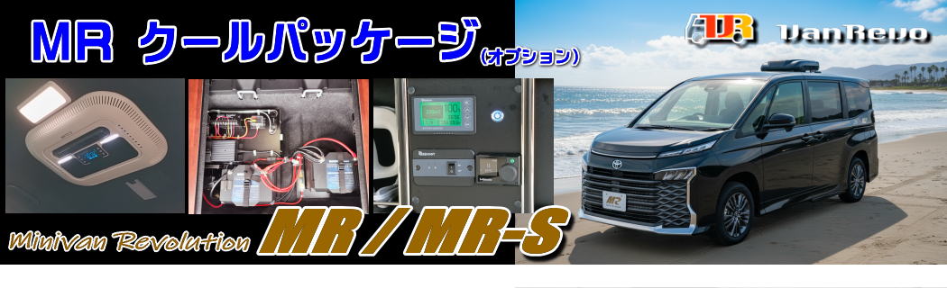 スタンダードなミニバン「トヨタ ノア X」をベースに、「MR-X」は、180Wソーラーパネル、2000Wインバーター、FFヒーター、電子レンジなどを標準装備した高機能モデル「MR」の装備に加えて、ナビゲーション、バックカメラ、ドライブレコーダー(前後カメラ/ナビ連動)、ETC2.0ユニット、メイン⇔サブバッテリー切替リレー&スイッチ(ナビ用)、リアフリップダウンモニターを装備した特別仕様車です。