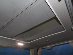 | バンレボリューションシリーズ最大の魅力でもある収納式2段ベッドと、VR470pの特徴であるポップアップルーフで、最大7名の就寝スペースを生み出すことができます。上段に2,000mm×1,100mmサイズ、中段に1,800mm×1,500mmサイズ、下段に2,100mm×1,400mmサイズのフルフラットなベッド展開ができます。ポップアップを閉じた状態でも5名が就寝できます。また、普段ベッドマットを使わないときには、左右のキャビネット内に全てのマットをスッキリと収納できます。 | ||||||