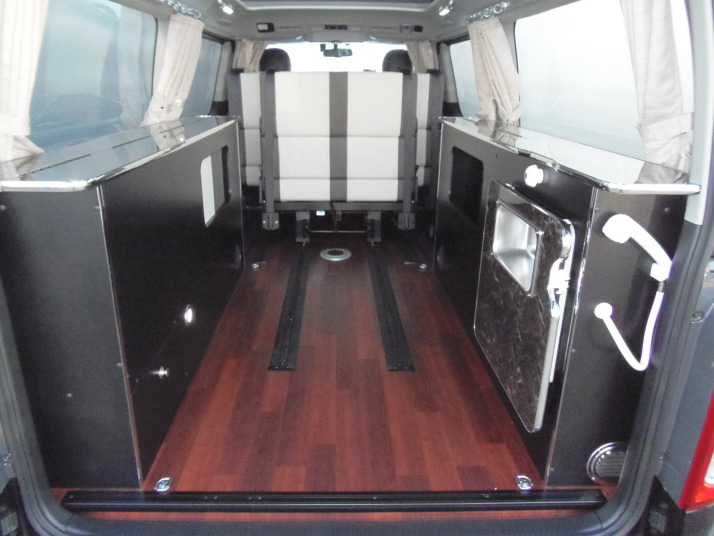 | VR470p Type-1(2列シート搭載モデル) 基本架装内容 ・ポップアップルーフ(後方開閉タイプ) ・テント部2面メッシュスクリーン開口 ・ロフトベッド(跳ね上げ可能) ・セカンドREVOバタフライタイプ1400幅シート[ST型] (対面対座、フルリクライニング&フルフラット機構付) ・セカンド左右席3点式シートベルト&中央席2点式シートベルト ・サードREVOバタフライタイプ900幅シート[ST型] (対面対座、フルリクライニング&フルフラット機構付) ・サードシート用2点式シートベルト ・REVOラバーカバー付セカンド&サードシート兼用ロングスライドシートレール ・上段用ベッドマット(大4枚、小2枚) ・ベッドマット収納&設置用左右キャビネット (電装設備設置スペース付) ・FIAMMAガレージバー (左右上部/可動式フック左右各5個付き) ・フロアタイダウンフック(4か所) ・パネルボードウレタン生地巻仕上げ(スーパーGLは純正成型トリム) ・フロア構造用合板パネル ・フロア抗菌タフリューム仕上げ ・シャワーフォーセット&電動ポンプ ・給水用タンク(10L) ・排水用タンク(10L) ・フォールディング式シンク ・コンパクトカセットコンロ ・カップフォルダー付ダイネットテーブル ・ダイネットテーブル用収納キャリア(バックゲート) |