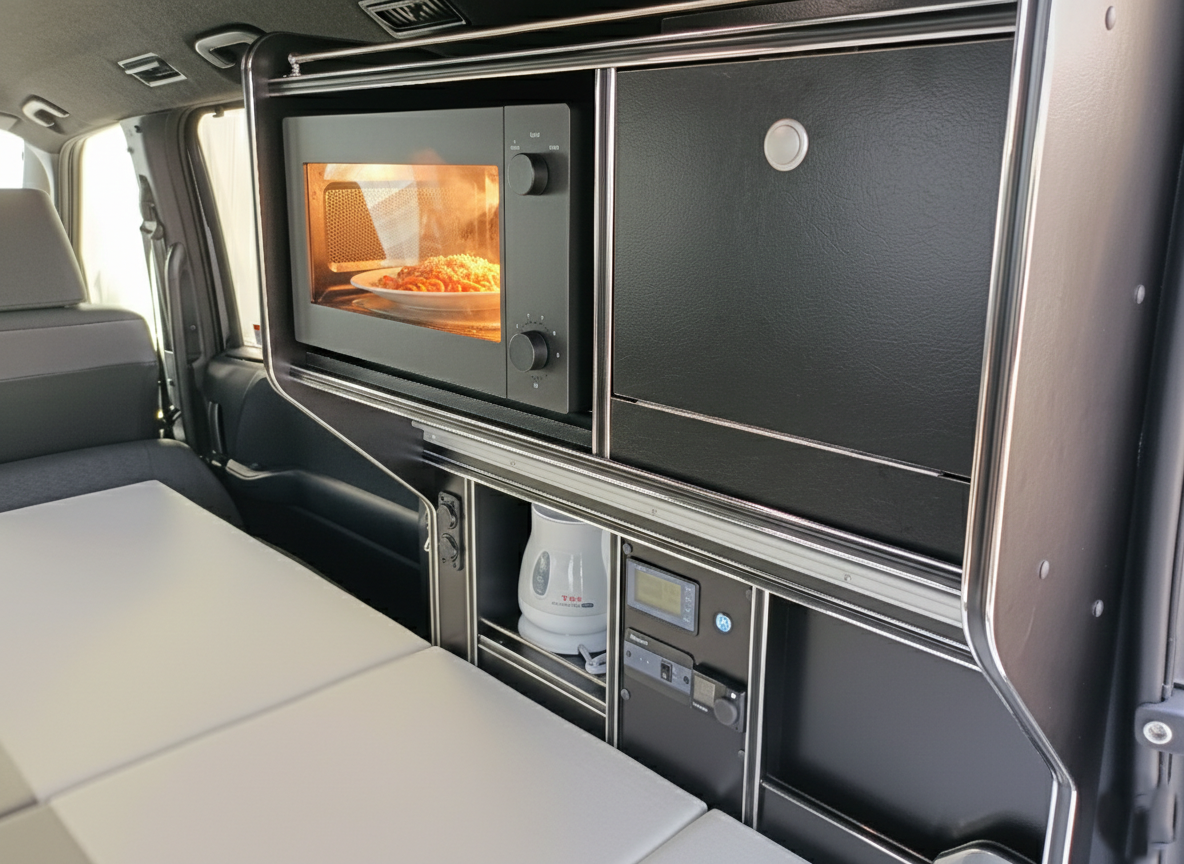 高出力モデルを標準搭載。車内でAC100Vが使え、電子レンジも力強く動かすことができます。