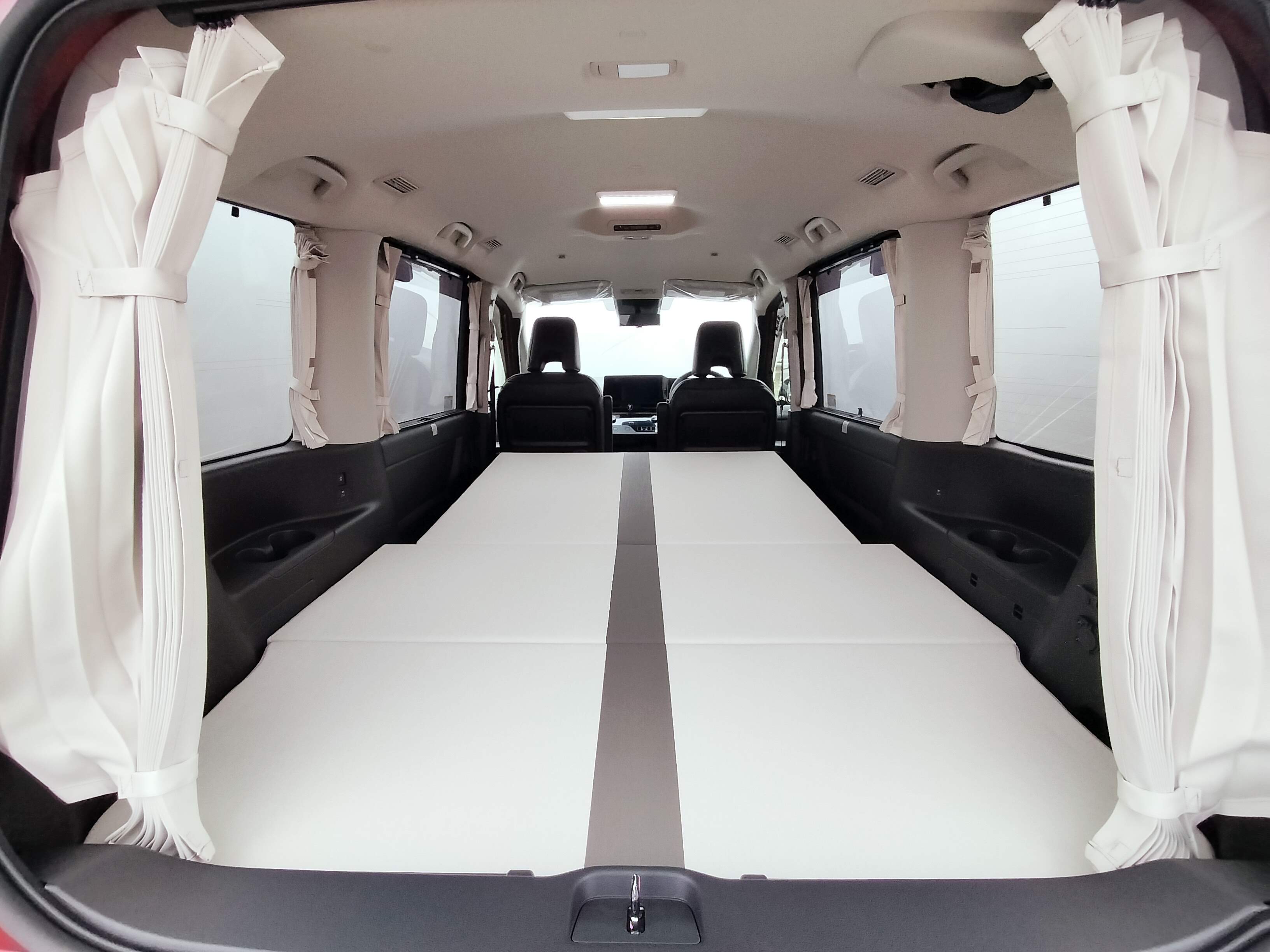 全ての窓にフィットする専用設計の日産純正プライバシーカーテンを装備。外からの視線を完全にシャットアウトしプライバシーを守ります。