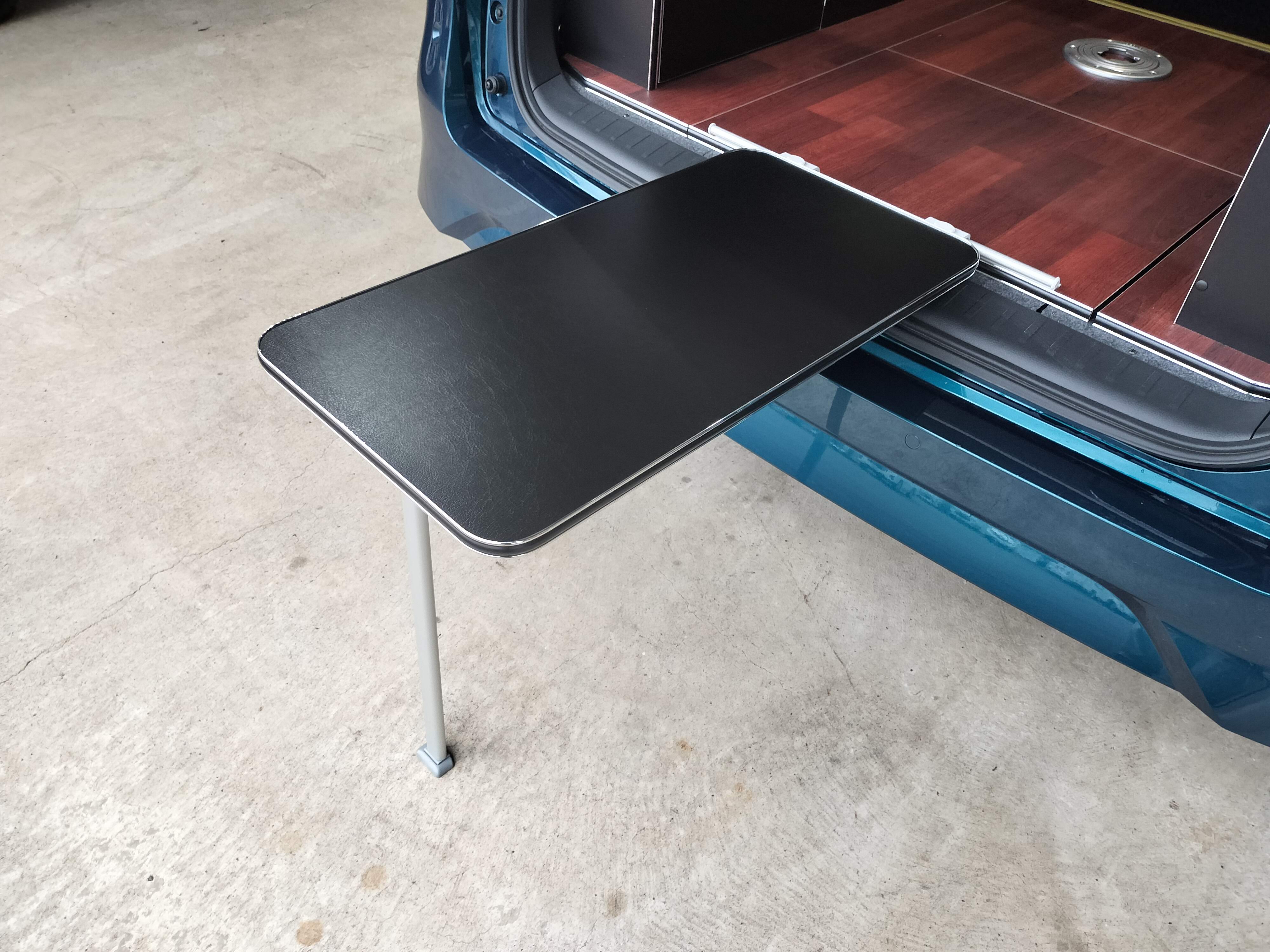 - 2WAY仕様テーブル: 室内での対面使用はもちろん、バックゲートを開けて外でも使えます。